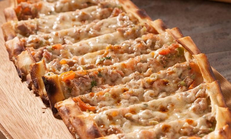 KUŞBAŞI DOĞRANMIŞ ET, DOMATES, BİBER VE RENDELENMİŞ KAŞAR İLE SERVİS EDİLİR.
